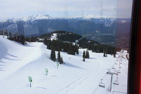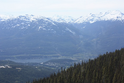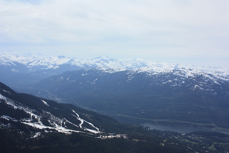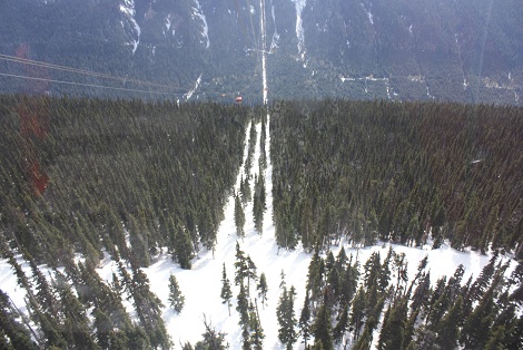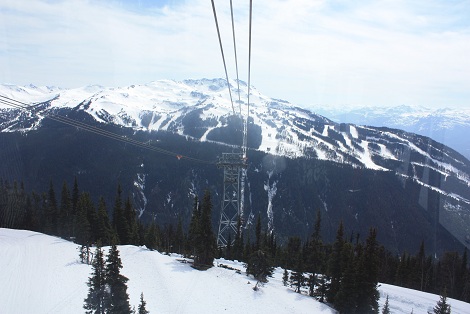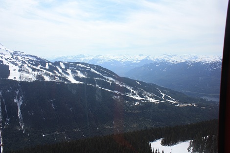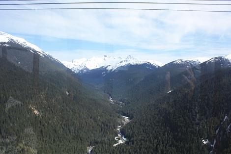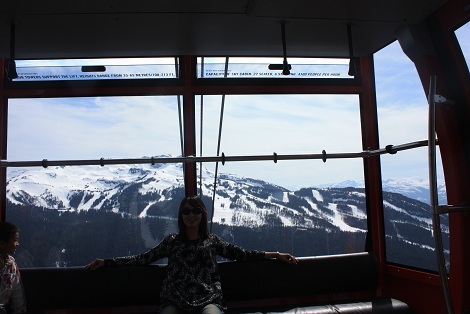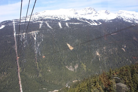 Whistler小镇的周围可谓群山峻岭,因为这个小镇就是坐落在落基山脉中,由于滑雪和山地车运动的需要,这里到处都架起了缆车,方便人们上山,后来为了更好的一览景色,缆车越建越多。我们坐了其中一条线的观光缆车,上去下来足足花了两小时,可见缆车之长,但风景真的没话说,有一种一览众山小的感觉,心旷神怡。