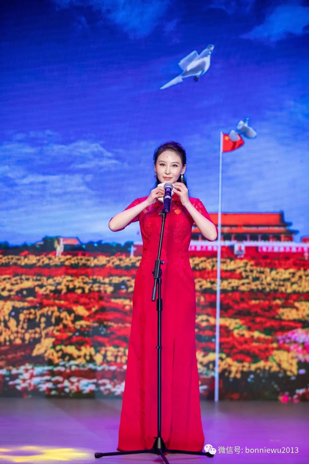 说起这个过程,非常感谢大家对我的认可和信任,我是代表侨商会去参与其中一个节目,考虑到我是归侨,又会陶笛,我便自荐来一首《我的中国心》,也表示我对祖国的爱。  第一次节目讨论后,组委会又有诸多创新建议,其中有建议要在汇演中穿插海外各地祝贺祖国70周年的快闪。后来聊天中组委会发现我是作家,还经营企业,提议把其中几个节目的演出者单独做个人视频,我也是其中之一。就这样,在陶笛演奏之前便多出了一个个人介绍及祝语视频,让到场嘉宾更能体会我们归侨的爱国之心。等到第二次讨论节目,我在开会时演讲了个人视频的演说内容,导演觉得声音不错,可以考虑作为主持人备选。主持人是著名的中国表演艺术家宿瑞明老师和天舟传媒的播音主持侯天卉,他们非常的专业。在积极的讨论中,大家一致建议,开场可以考虑四个主持人,于是就有了我主持的机会。这里特别感谢导演朱步沂团长,在正式演出前一天,不断的指导训练我的演讲,非常有耐心的对我声音和朗诵气场进行调整,第二天的演出的顺利和成功是与他锲而不舍精益求精的精神分不开的。看了彩排的大伙儿热情高涨,激动的说整场汇演的步调被一上场的四个主持人带出了节奏,晕染了激昂的气氛,让观众一下子就能被满满的爱国之心所感染。