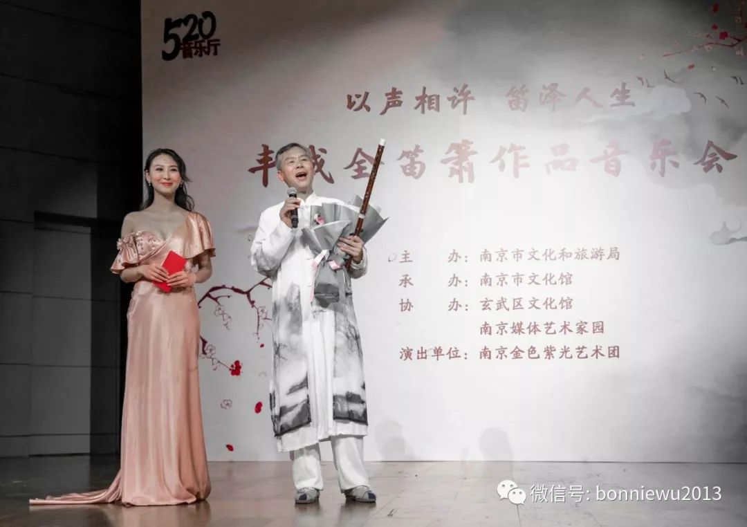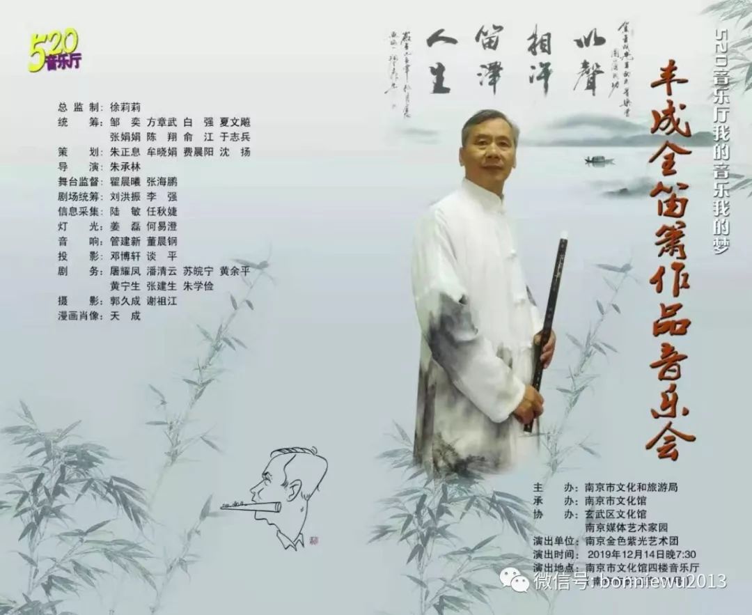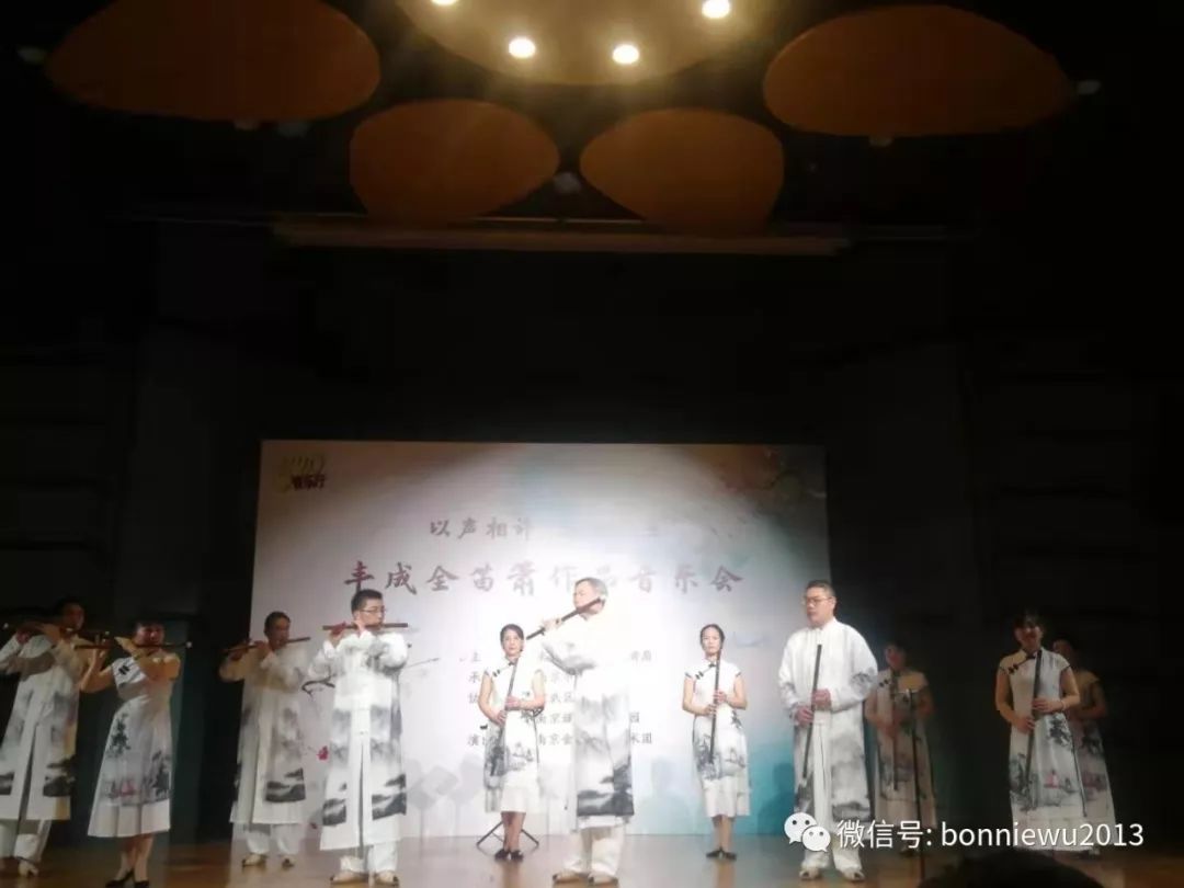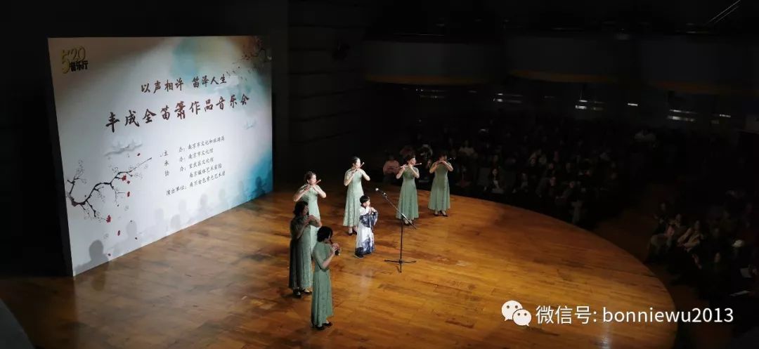 2019年12月14日晚,“以声相许 笛泽人生——丰成全笛箫作品音乐会”在南京市文化馆举办,场内座无虚席,一票难求。这是中国竹笛学会理事、艺术家园丰成全师生音乐会刮起的“南京旋律风”。民乐的艺术魅力再次让人大开眼界。音乐会由南京市文化和旅游局主办,南京市文化馆承办,玄武区文化馆、南京媒体艺术家园协办,南京金色紫光艺术团出演。丰老师近10年来精心创作的原创作品有40多首,仅今年创作的组曲《秦淮的情怀》就有10首,可以开三场以上不重复曲目的音乐会。这次挑出来的13首都具有南京情愫,南京鲜明的地域风情扑面而来。非常荣幸,这场意义非常的音乐会由我作为整场导聆。音乐会圆满成功,当晚金陵晚报,扬子晚报,中国新闻网,龙虎网等各大媒体均已抢先报道。这场音乐会画风唯美,音乐更美,都是丰成全老师原创的笛箫曲,我又多了一张好好保存的节目单。感谢丰老师赠送的书和乐谱,还有一只竹笛作为珍藏,期待之后有机会笛箫与陶笛的合作。