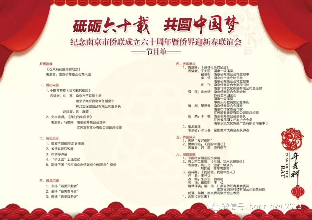 1月13日下午,纪念南京侨联成立60周年暨侨界迎新春联谊会举行。我再次荣幸担任主持人,谢谢所有给予指导和提携的领导和老师们,一次次的上台,一次次的成长。