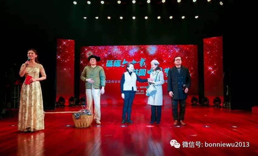 这场演出中情景剧《追寻母亲的足迹》感人至深,获得了一致好评。我非常荣幸能担任这场剧的编剧,从一开始由饭桌上的一个小故事,到朱导演的创意,之后由我执笔将其改编成话剧剧本,最终由专业演员们呈现,就好像看着一个孩子茁壮成长。这也是我第一次尝试话剧剧本的创作,非常有意义。这次成功的演出归功于朱导的设计,演员的精彩表演,还有我们国家一级演员王安丽老师的参与与指导,实在受益匪浅。侨界群众以小提琴齐奏《我和我的祖国》、独唱《我们的中国梦》、情景剧《追寻母亲的足迹》、独唱《我的中国心》、合唱《祖国,我永远祝福你》、音诗画《我骄傲,我是中国人》等节目,充分展示了南京市侨界爱国爱乡的光荣传统,展现新时代侨界人士积极投身“创新名城、美丽古都”建设的亲身实践,共同表达了对南京市侨联成立60周年的祝福。大会表扬了一批以老归侨为主要代表的“最美贡献者”、以新侨为主要代表的“最美奋斗者”、以侨联工作者为代表的“最美服务者”,以及为祖籍国的建设和住在国的发展发挥了重要作用的“友好侨团”。